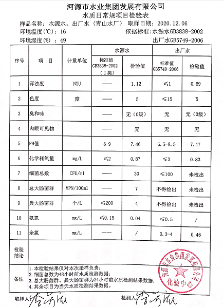 2020年12月5日水质检验报告