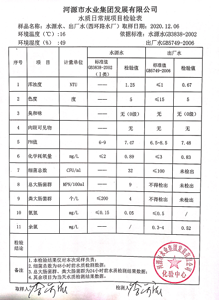 2020年12月6日水质检验报告