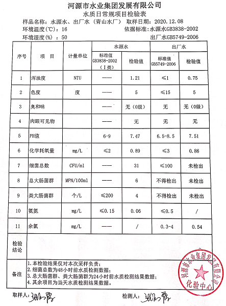 2020年12月7日水质检验报告