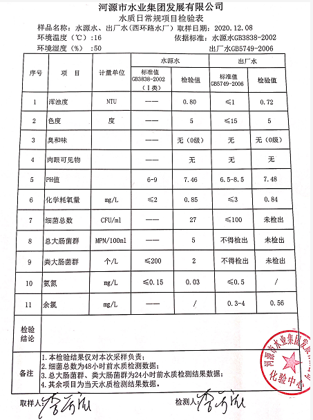 2020年12月8日水质检验报告