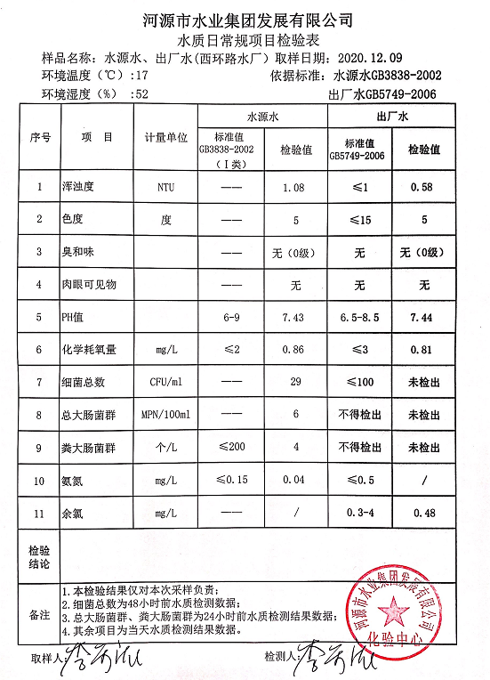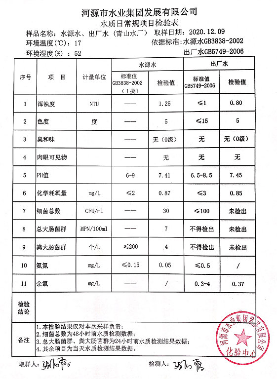 2020年12月10日水质检验报告