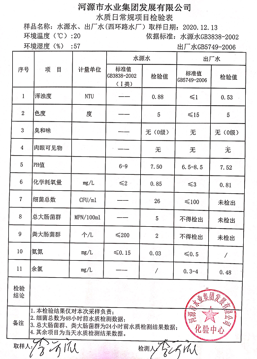 2020年12月13日水质检验报告