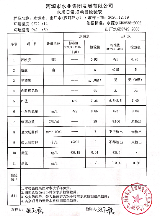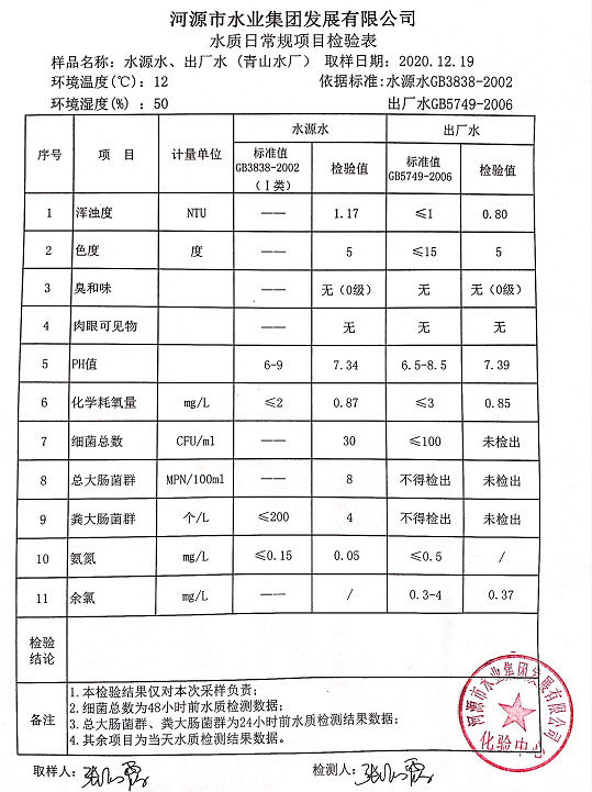 2020年12月19日水质检验报告