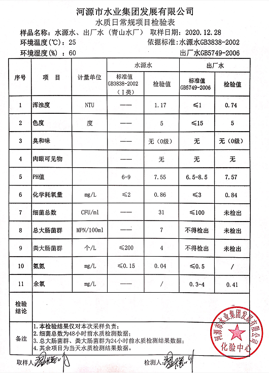 2020年12月28日水质检验报告