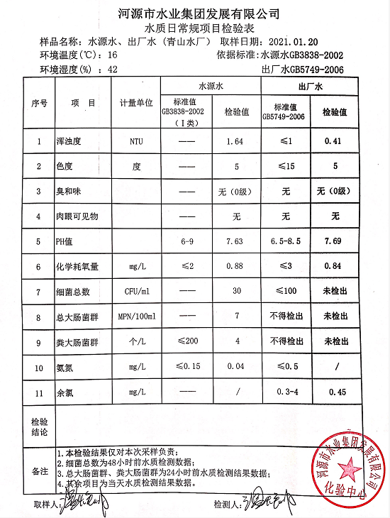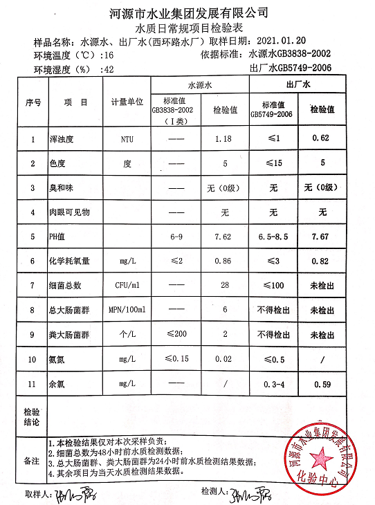 2021年1月21日水质检验报告