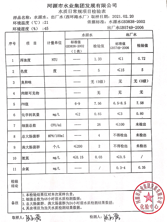 2021年2月20日水质检验报告
