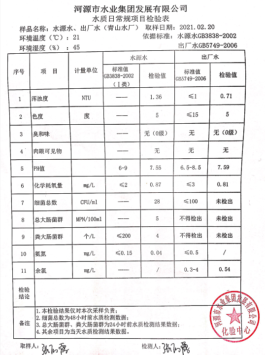 2021年2月21日水质检验报告