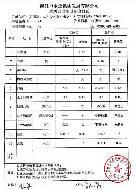 2021年2月22日水质检验报告
