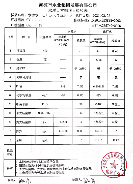 2021年2月21日水质检验报告
