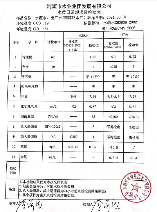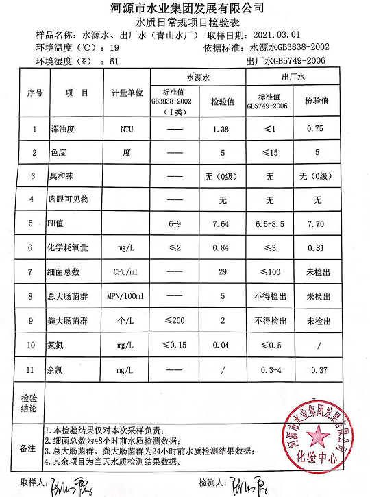 2021年3月1日水质检验报告