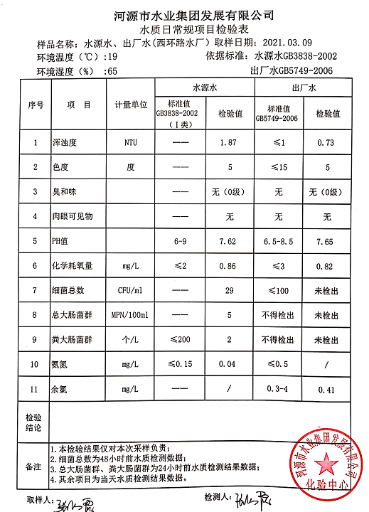 2021年3月9日水质检验报告