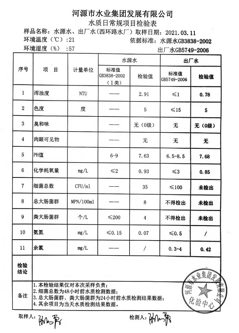 2021年3月11日水质检验报告