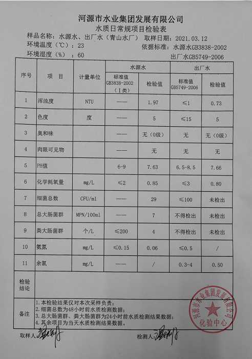 2021年3月12日水质检验报告
