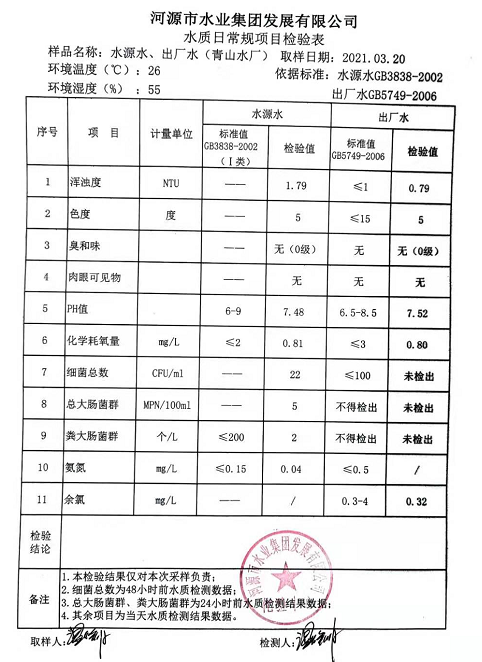 2021年3月20日水质检验报告