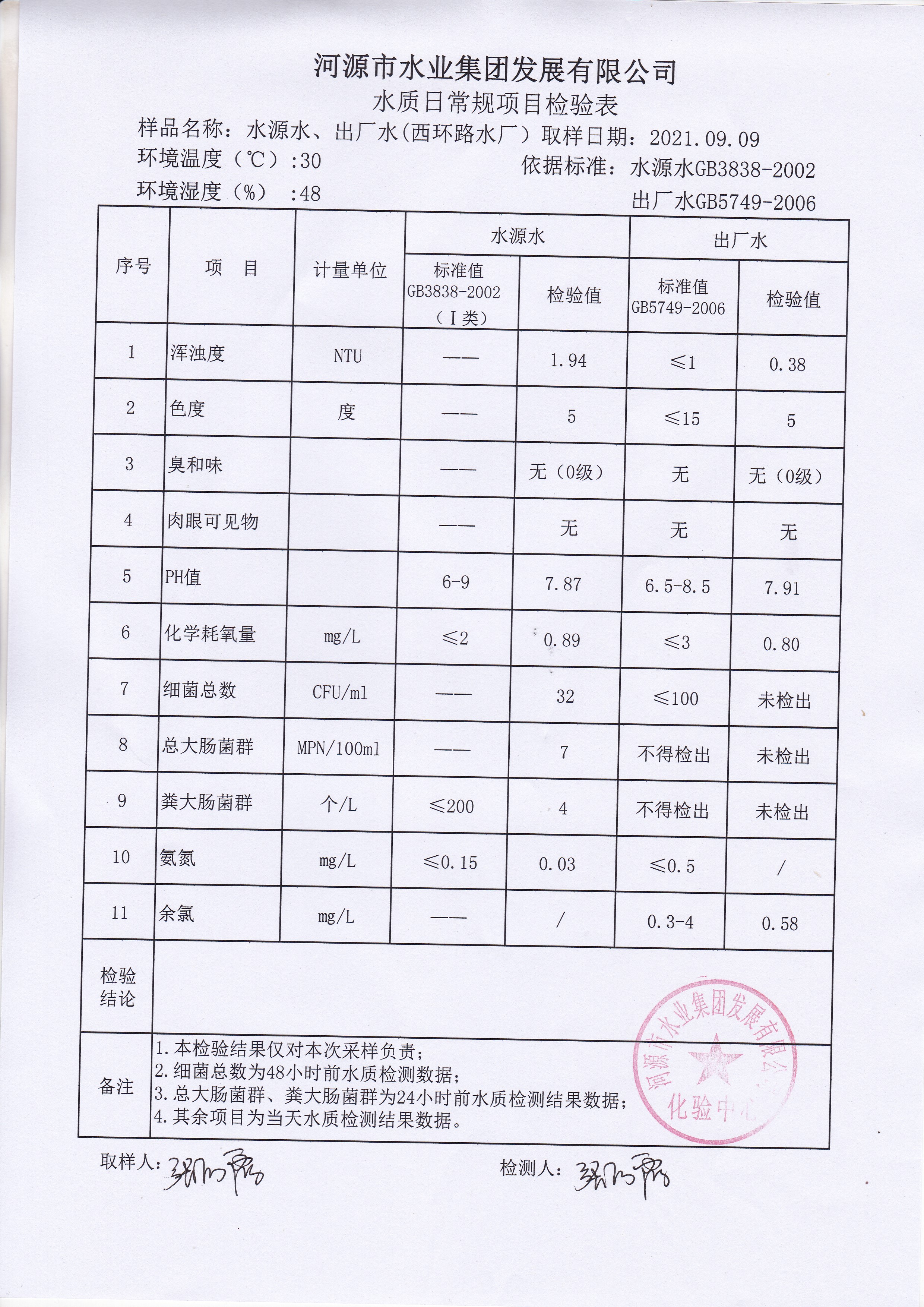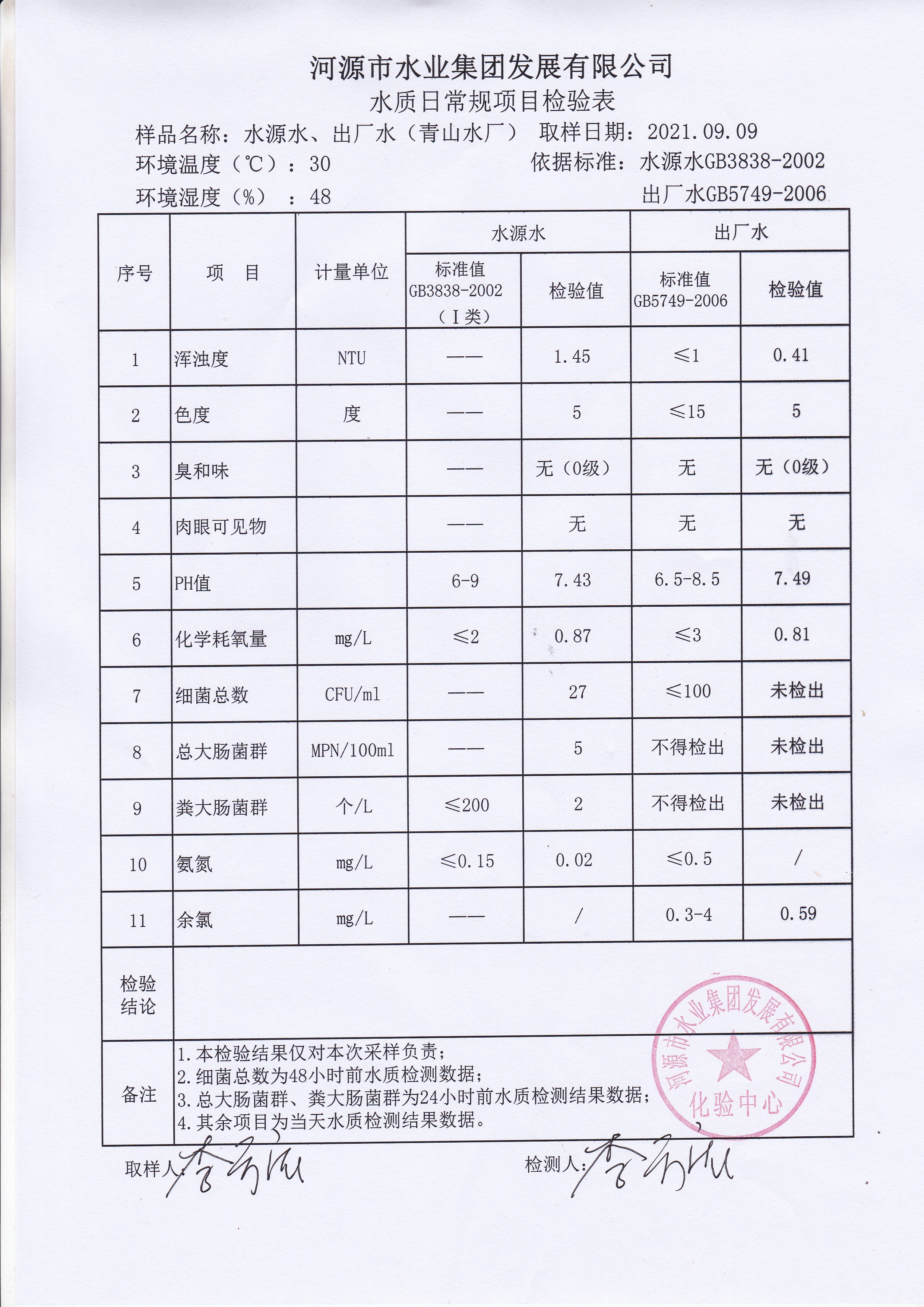 2021年9月9日水质检验报告