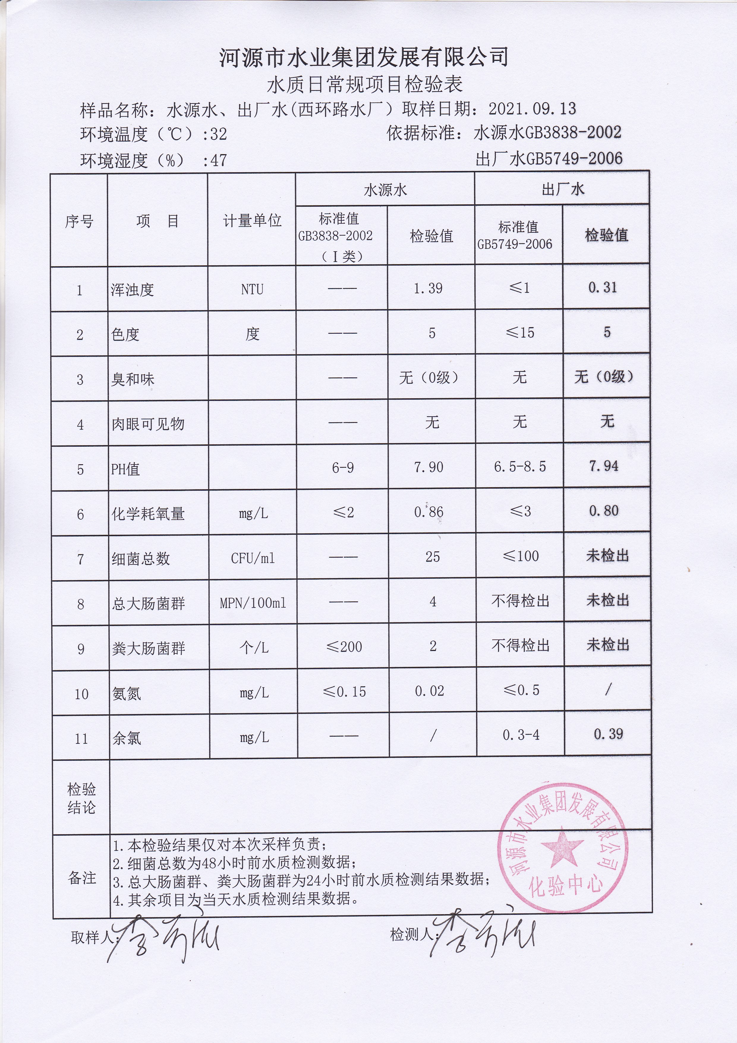 2021年9月13日水质检验报告