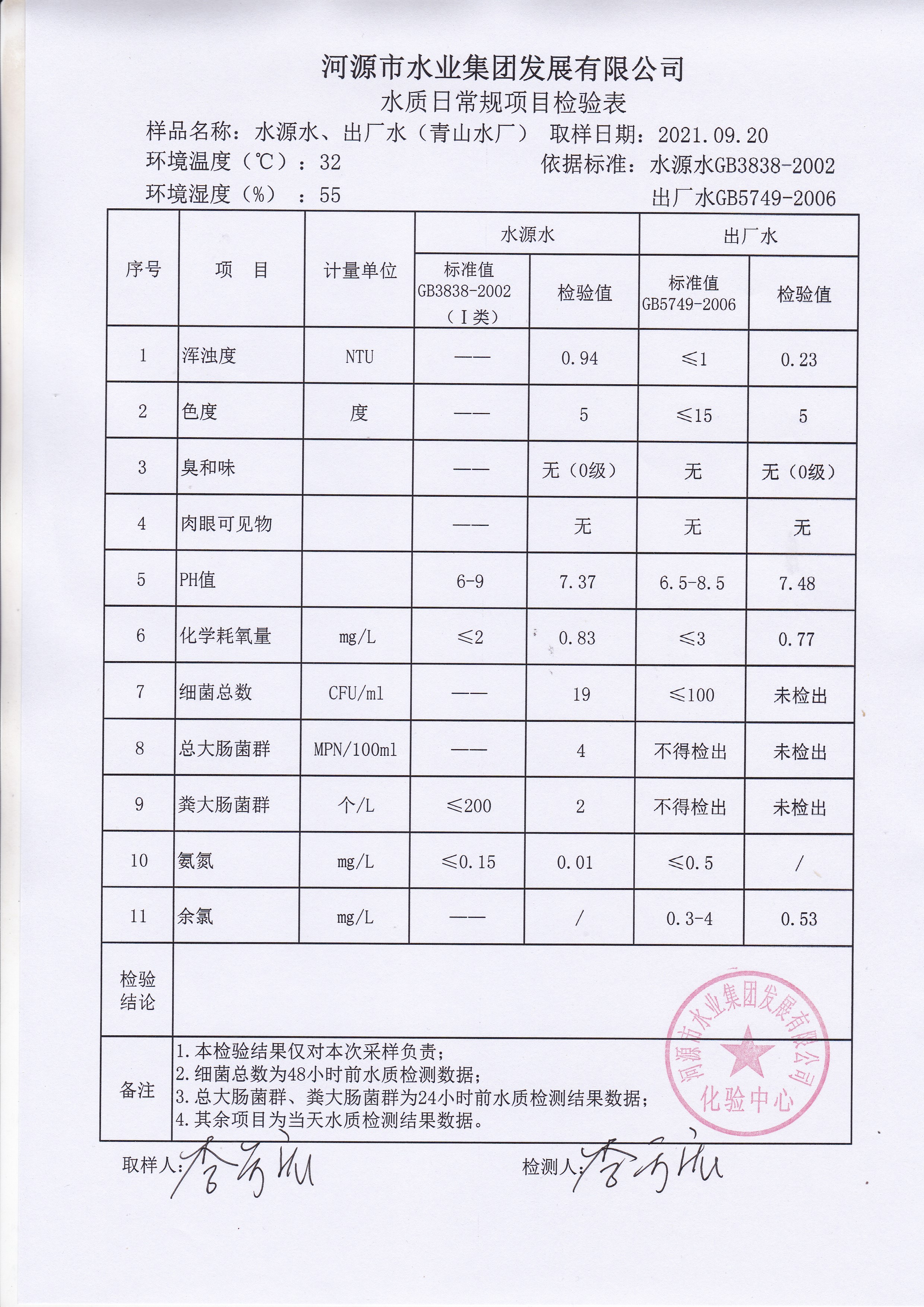 2021年9月20日水质检验报告