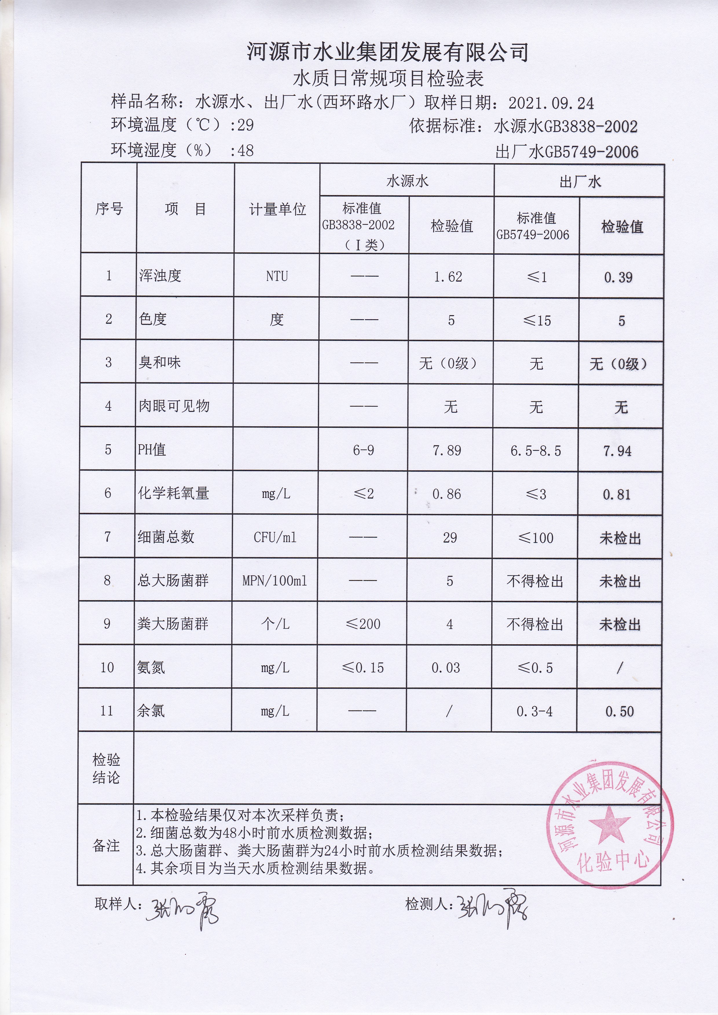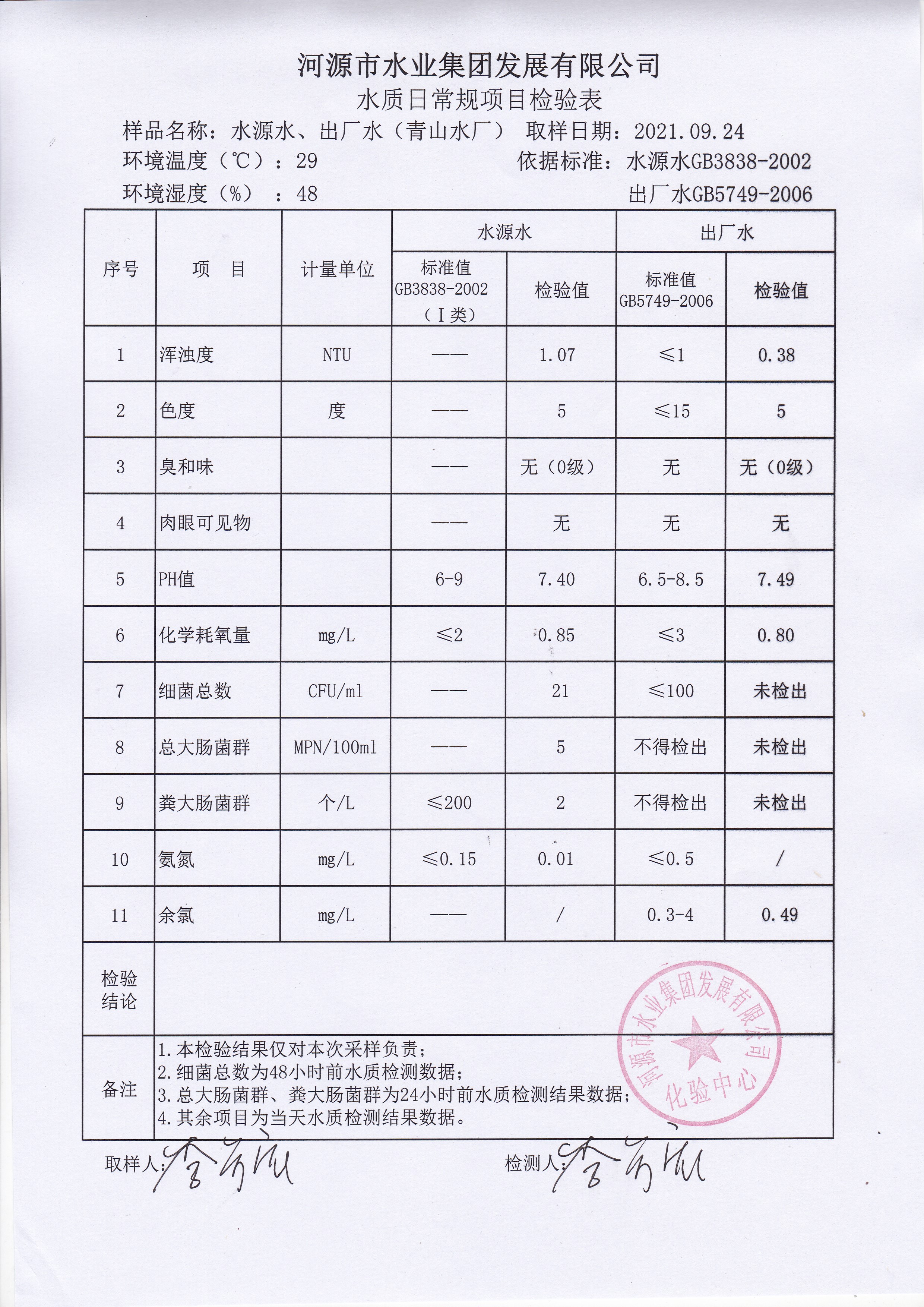 2021年9月24日水质检验报告