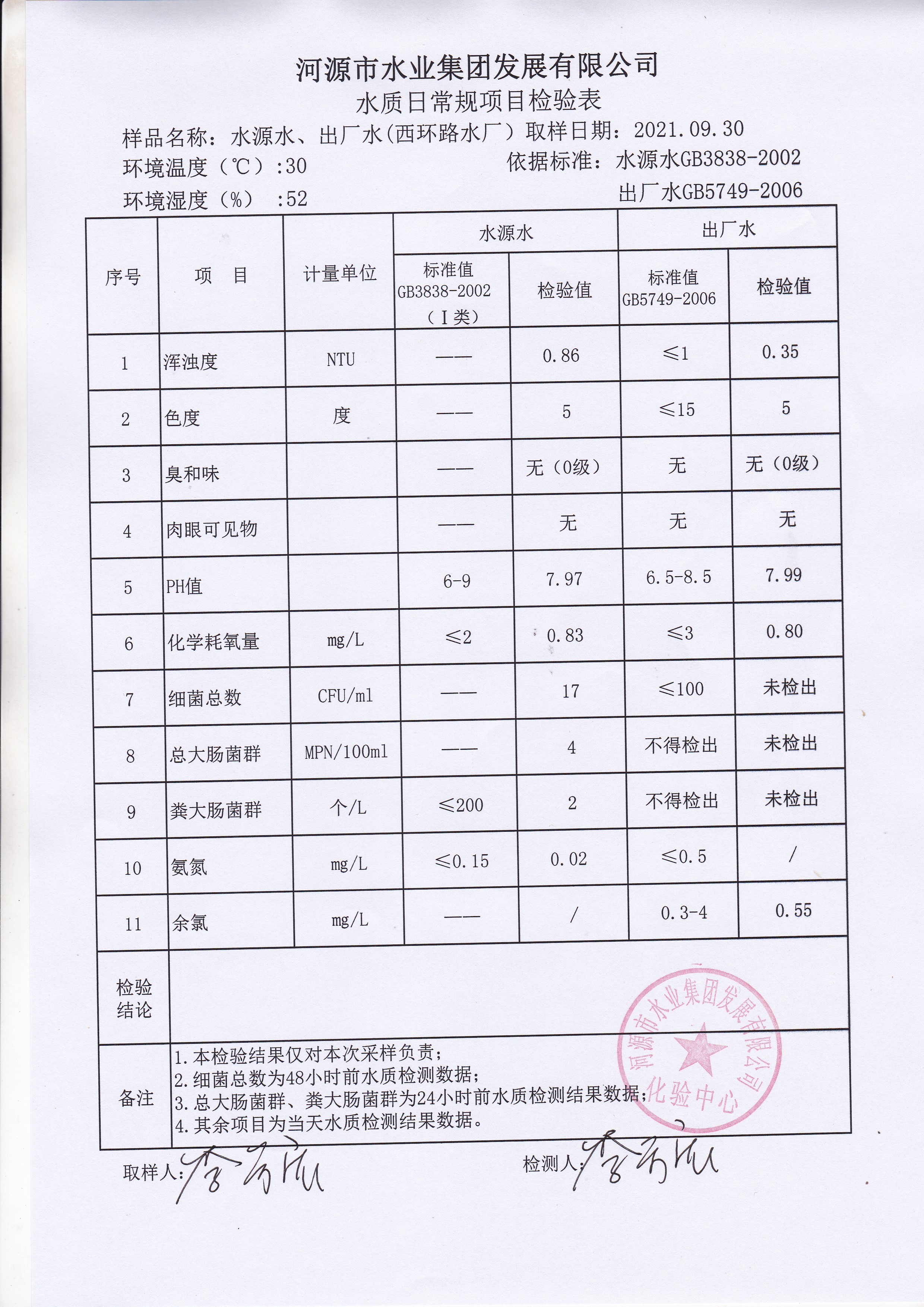 2021年9月30日水质检验报告