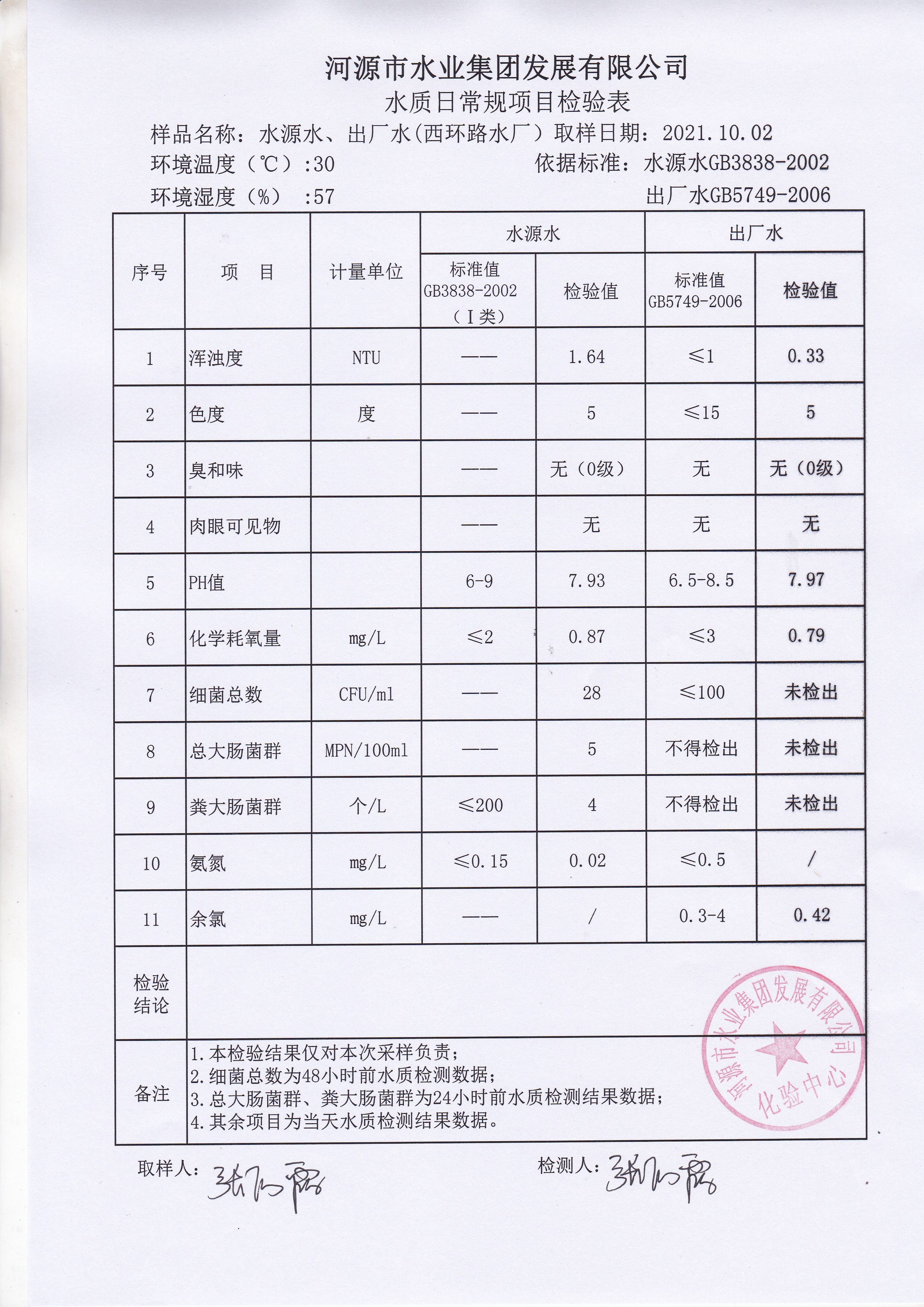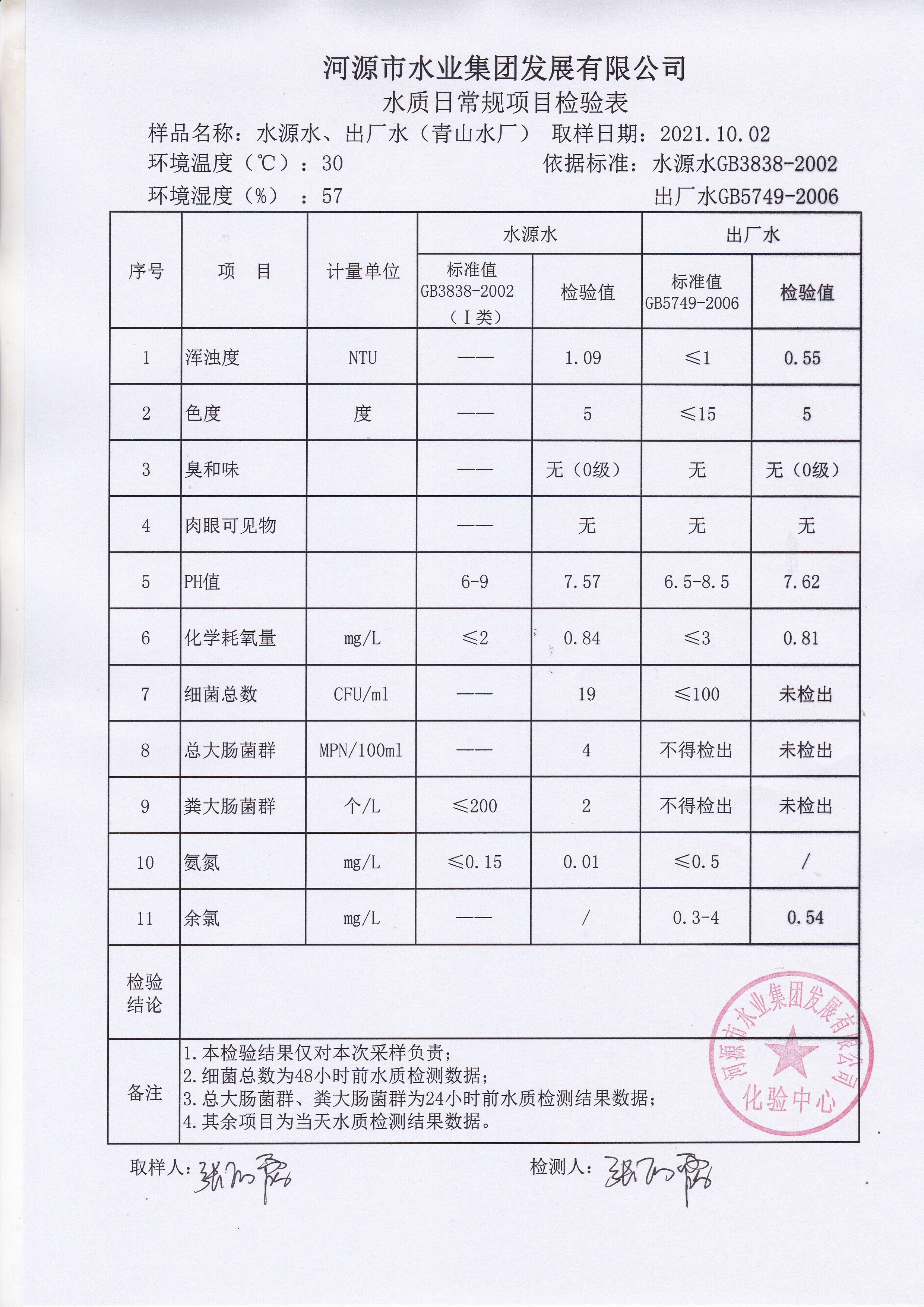 2021年10月2日水质检验报告