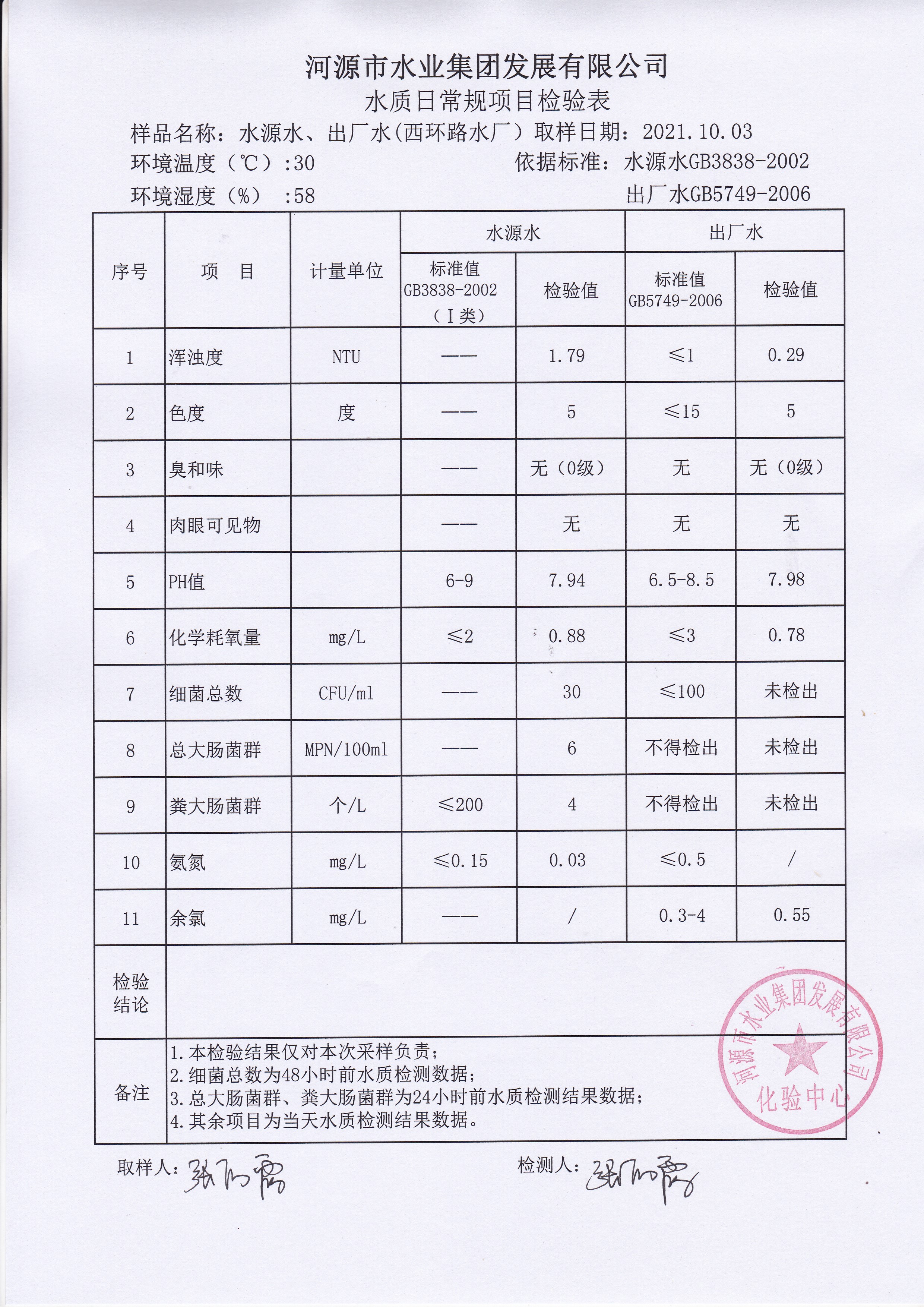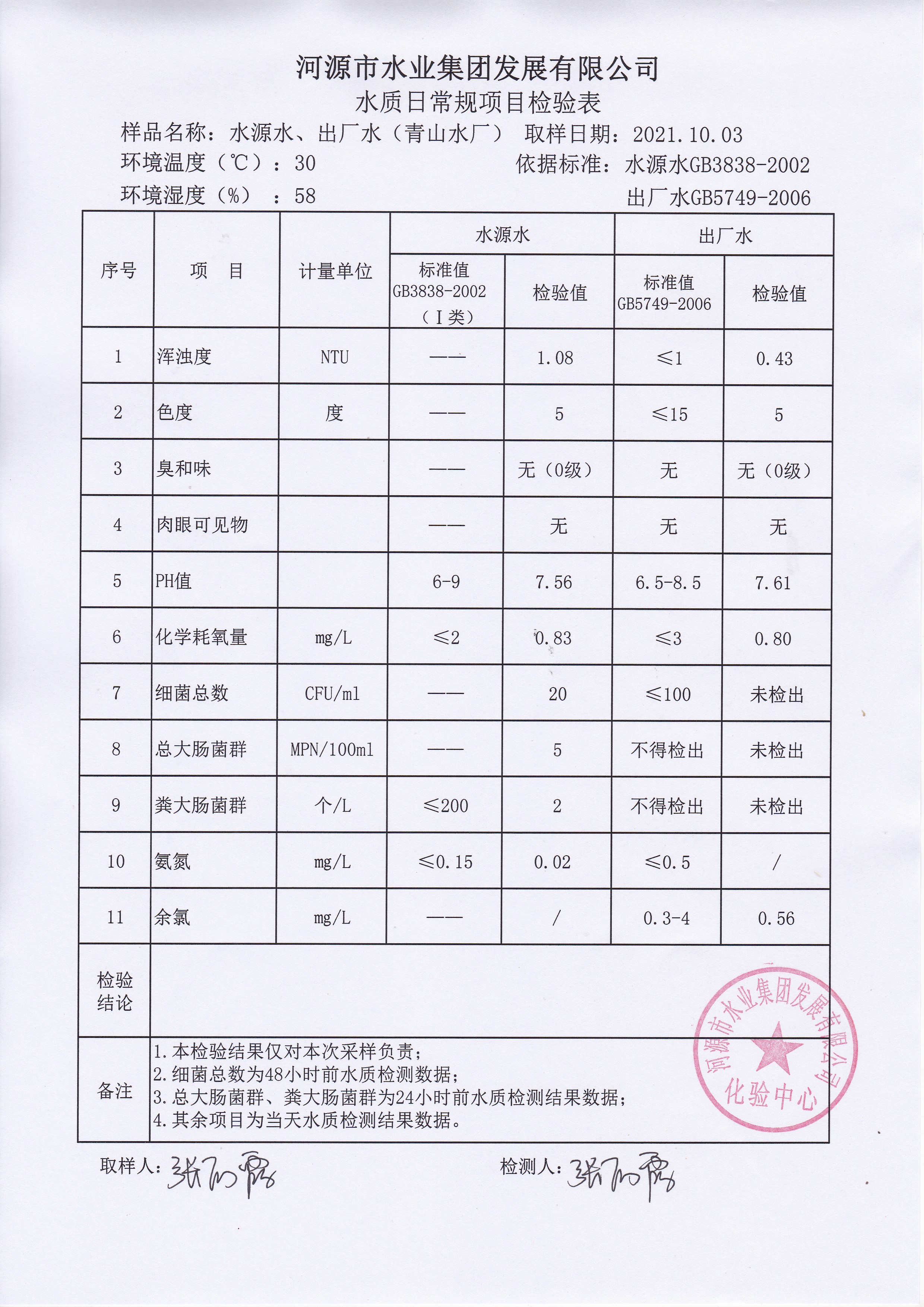2021年10月3日水质检验报告