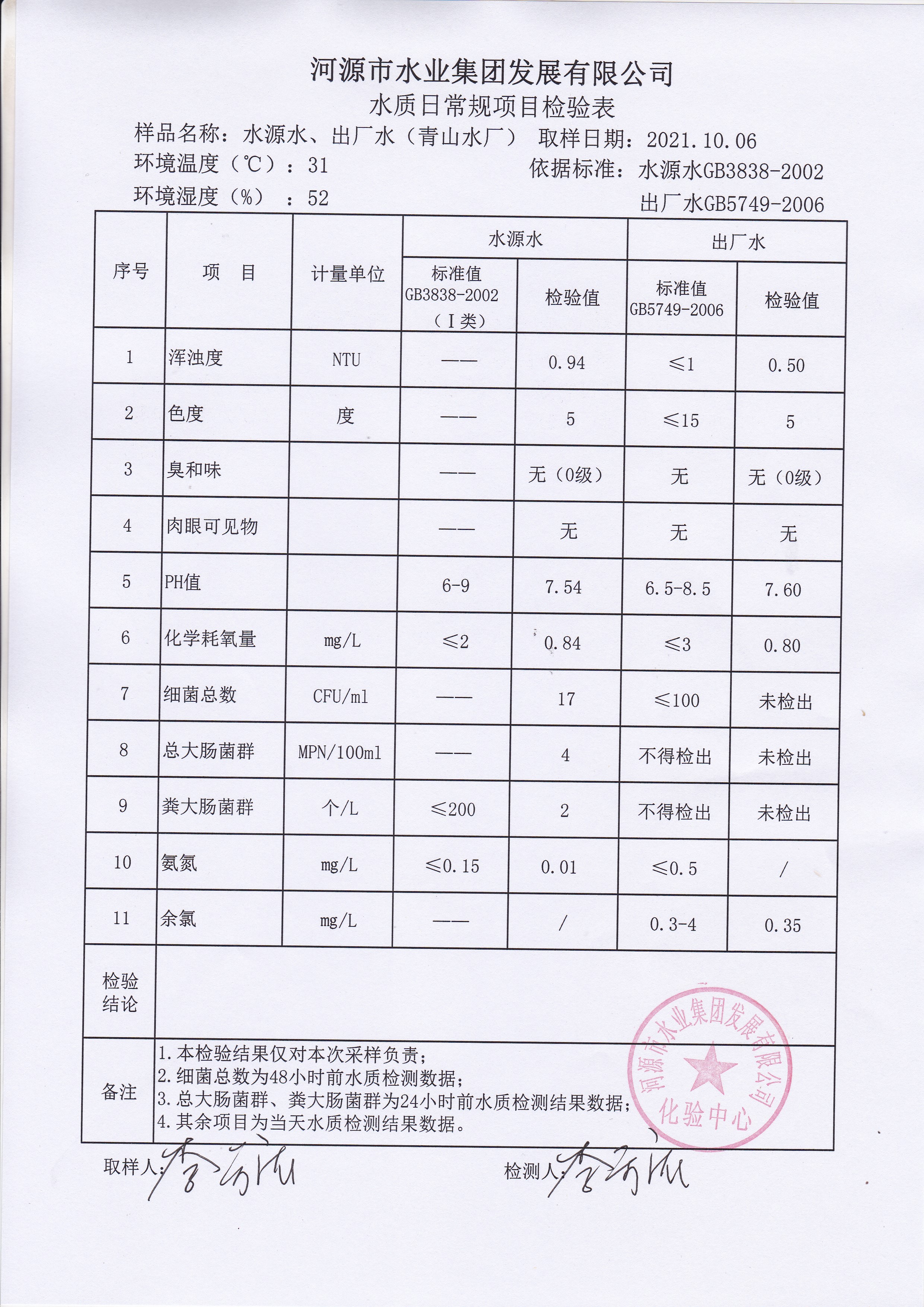 2021年10月6日水质检验报告