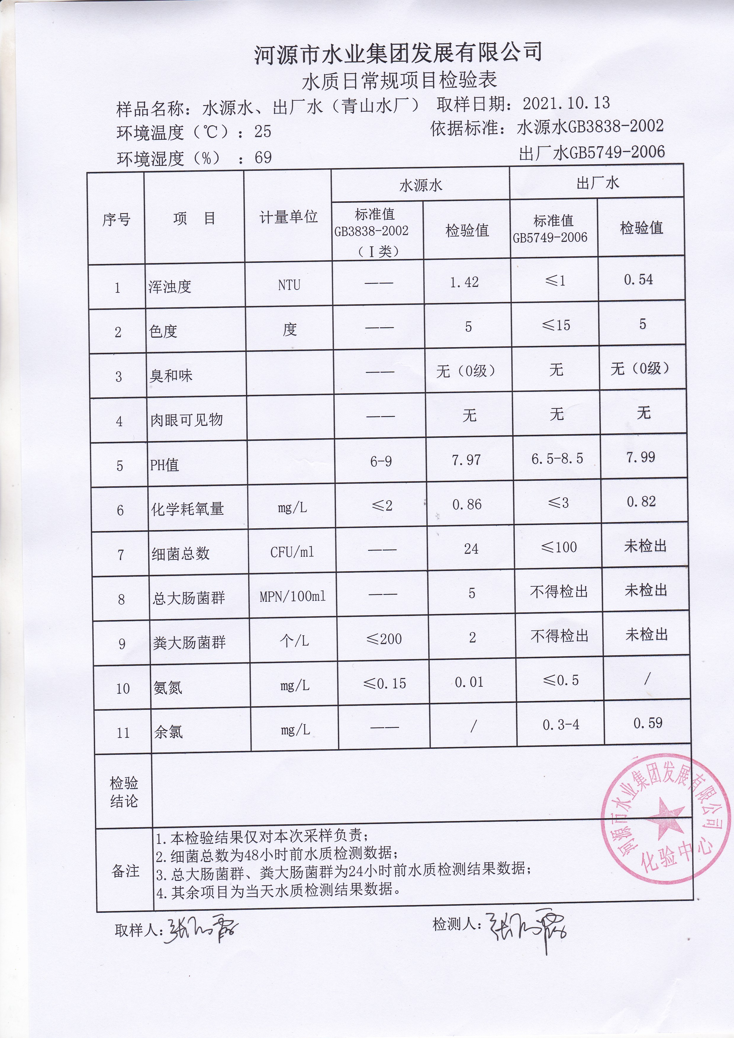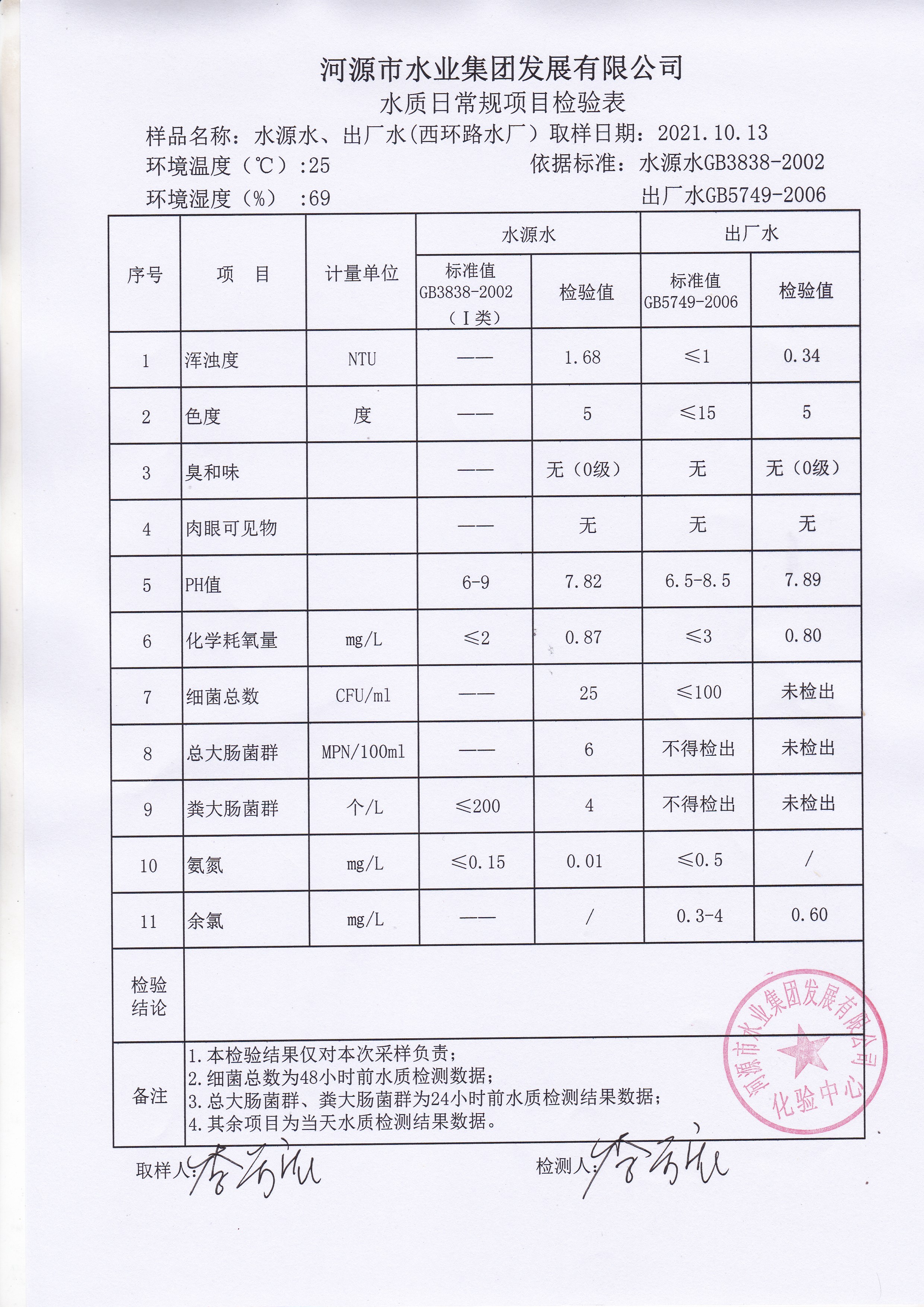 2021年10月13日水质检验报告