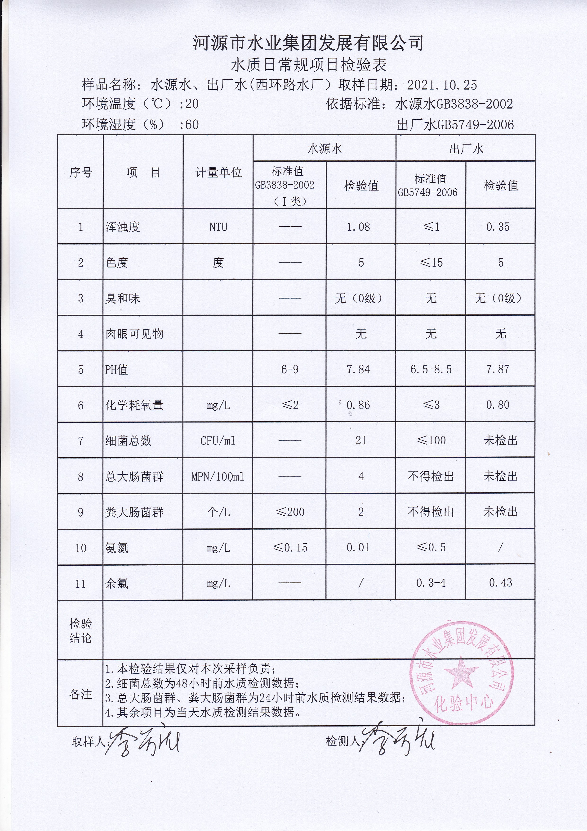 2021年10月25日水质检验报告