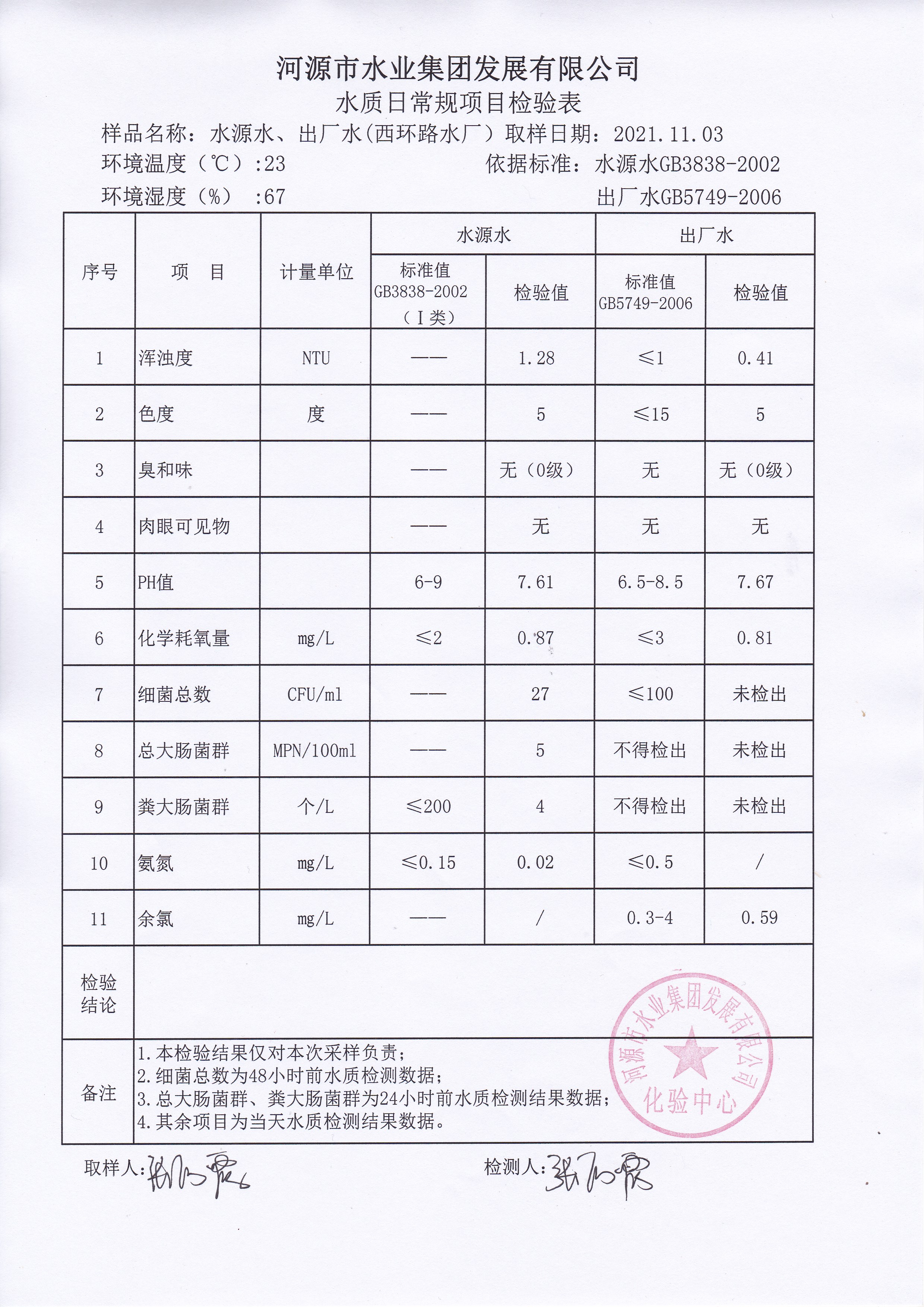 2021年11月2日水质检验报告