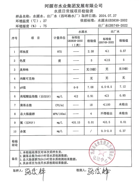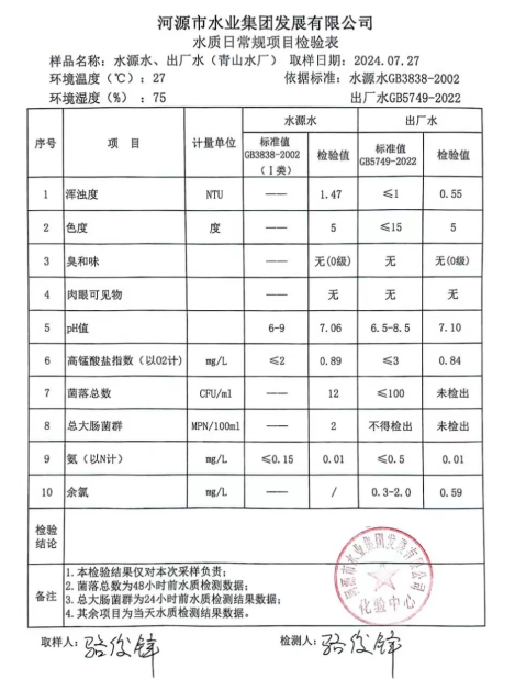 2024年7月27日水质检验报告